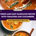 - Optional Serving Suggestion: Enjoy the gazpacho in a large bowl over a piece of toasted sourdough bread (use gluten-free if preferred). You may also add a crumble of goat cheese or grilled halloumi for extra flavor and texture.