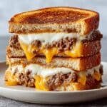 This classic Patty Melt recipe features juicy, flavorful beef patties nestled between melted cheddar and Swiss cheese, caramelized Vidalia onions, and a tangy secret sauce, all sandwiched in golden, buttery marble rye bread. Perfectly cooked on the stovetop for a deliciously crispy and melty finish.