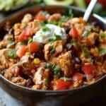 - Garnish and serve: Top your bowl with fresh diced tomatoes, green onions, sour cream, and creamy guacamole. These fresh notes brighten and balance the dish beautifully.
