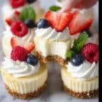This super easy Mini Cheesecake recipe delivers smooth, creamy, and crack-free cheesecakes baked in just 22 minutes. Perfectly sized for parties or holidays, these individual cheesecakes have a buttery graham cracker crust and a luscious filling made with classic cream cheese, sugar, and vanilla. Chill them for a few hours, then top with your favorite whipped cream or fresh fruit for a bakery-worthy dessert everyone will love.